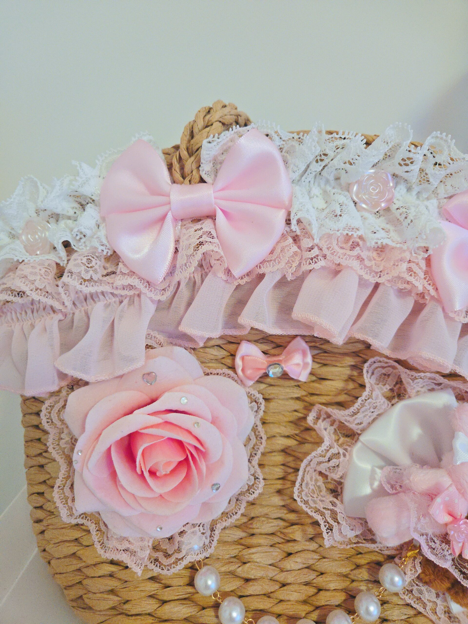 Be the first to review “Ribbons and Roses Straw Tote Bag”